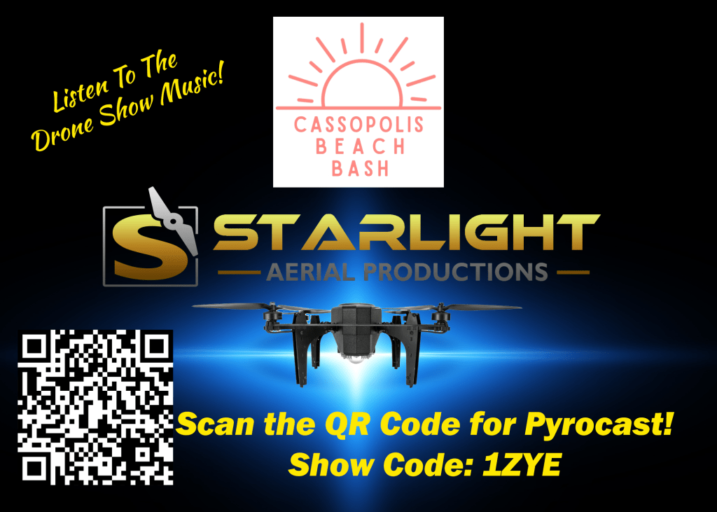 Listen to the drone show music! Download the Pyrocast app and enter show code 1ZYE