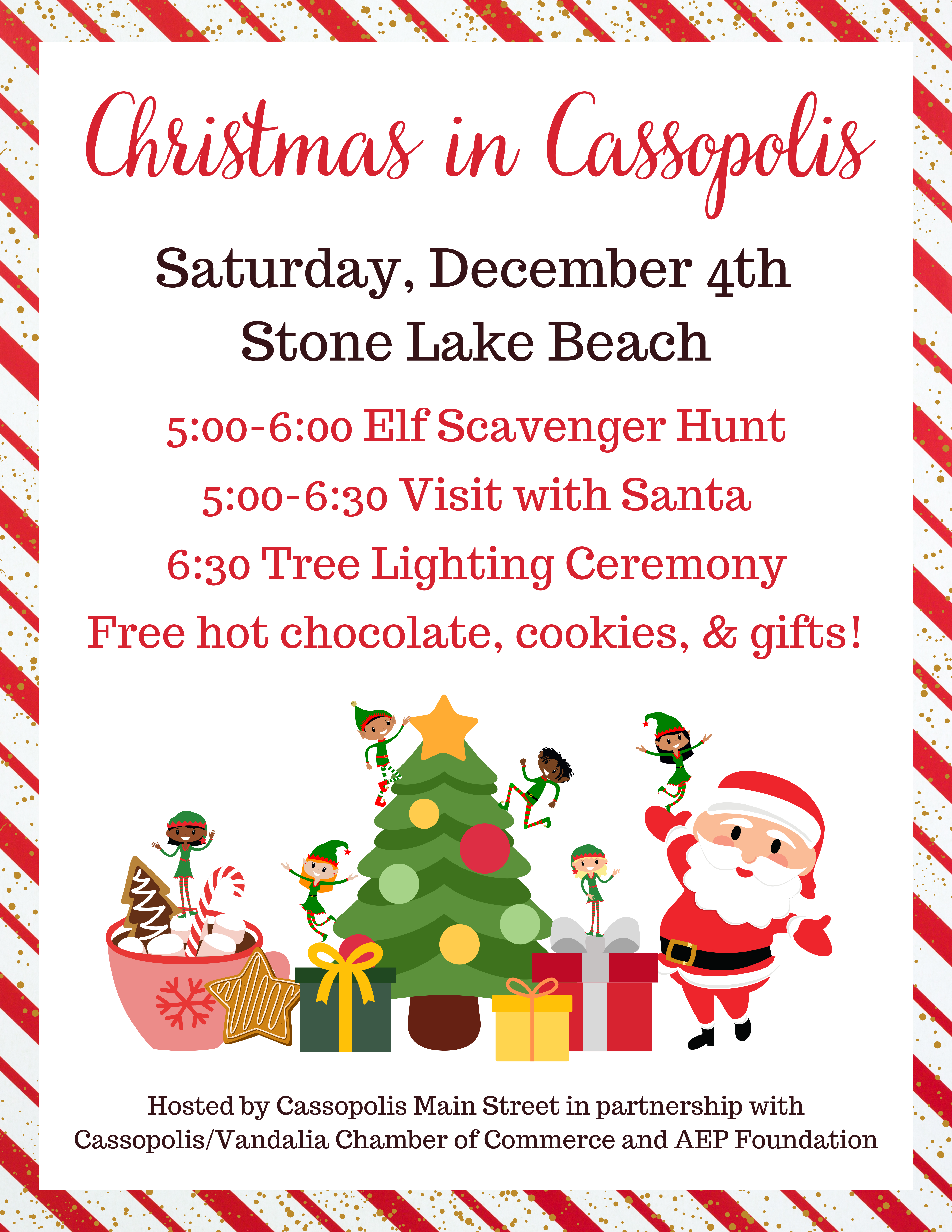Elf Scavenger Hunt • Visit with Santa • Free Hot Coco, Coffee, Cookies, and Cupcakes Free Gifts • Ranger Jazz Band Performance • Tree Lighting Ceremony